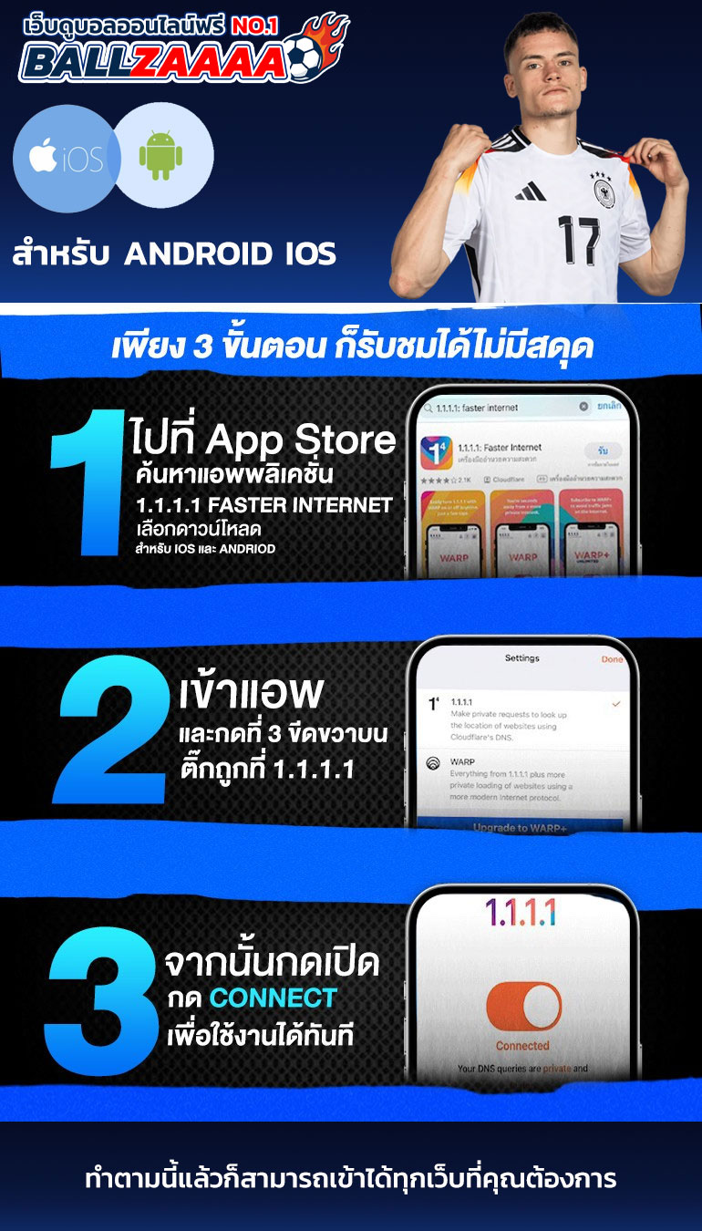 วิธีแก้ไขปัญหาเข้าเว็บไม่ได้ ดูบอลสดฟรี สนุกได้เต็มแมตช์ด้วย APP 1.1.1.1